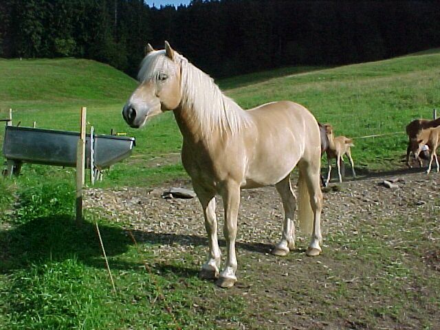 Gut gerittener Wallach, der auch als Onkel für die Fohlen fungiert. Vor allem fühlt er sich als Pascha "seiner" Herde wohl.